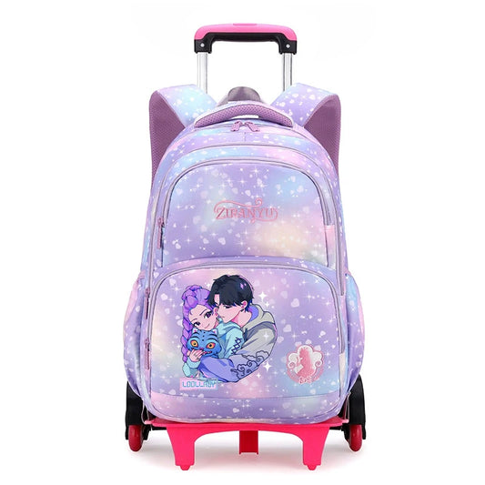 K팝 데몬헌터 키즈 백팩 귀여운 만화 프린트 학교 백팩 여아 휴대용 트롤리 학교 가방 어린이 생일 선물